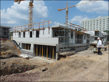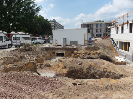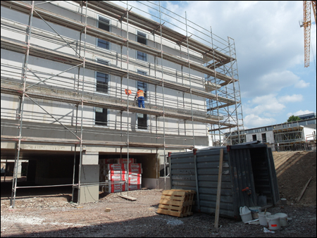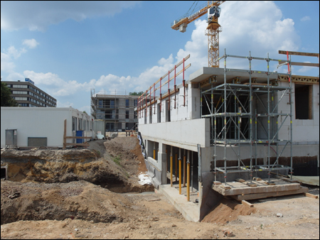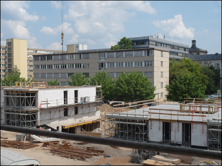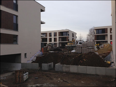 Auf dem Grundstück Schnorrstraße / Ecke Franklinstraße entsteht ein Wohnquartier mit insgesamt 81 Wohneinheiten, aufgeteilt auf 3 Gebäudekomplexe. Gebäude 1: Der Riegel, im Norden des Grundstücks, mit 33 Wohneinheiten. BA3 Gebäude 2: Die Einzelhauszeile Franklinstraße mit 24 Wohneinheiten und einem Sockelgeschoss / Tiefgarage mit Anbindung an die Franklinstr. BA1 Gebäude 3: Die Einzelhauszeile Schnorrstraße mit 24 Wohneinheiten und einem Sockelgeschoss / Tiefgarage mit Anbindung an die Schnorrstr. BA2 Alle Gebäude orientieren sich um einen gemeinsamen Innenhof. Das Quartier befindet sich in direkter Nachbarschaft zum Dresdner Stadtzentrum in unmittelbarer Nähe zum Großen Garten, dem Dresdner Zoo und der Technischen Universität Dresden. Durch die zentrale Lage hat es beste Anbindung an das Dresdner Nah- und Fernverkehrsnetz. Als Zentrum des Quartiers gibt es einen begrünten Innenhof mit Sitzmöglichkeiten und Spielplatz. Jede Wohnung im EG hat einen privaten Gartenbereich, der durch Hecken vom Innenhof abgetrennt ist. Im Bereich der Schnorrstraße, wo sich das Quartier öffnet, werden Hecken gepflanzt, um eine Abgrenzung zwischen privatem und öffentlichem Raum zu schaffen. Die interne Straße erhält einen Asphaltbelag, die Parkflächen ein Ökopflaster. Eingehauste Wertstoffplätze befinden am Übergang der Quartierstraße zur Franklin- und Schnorrstraße, sowie direkt an der Einzelhauszeile Franklinstraße. Erschlossen wird das Wohnquartier durch eine Straße im hinteren Quartiersbereich, mit Stellplätzen zu den Nachbargrundstücken. Die Einzelhauszeilen erhalten eine voneinander getrennte Tiefgarage mit einer Zufahrt von der Franklin- und Schnorrstraße. Der Riegel wird von Norden, von der Quartierstraße aus, erschlossen. Die Einzelhauszeile Franklinstraße wird von der Franklinstraße und die Einzelhauszeile Schnorrstraße von der Schnorrstraße/Quartierstraße aus erschlossen. Die Wohnungen im Erdgeschoss sind barrierefrei erreichbar. (Auszug aus den Bauantragsunterlagen vom Büro O+M Architekten GmbH) |